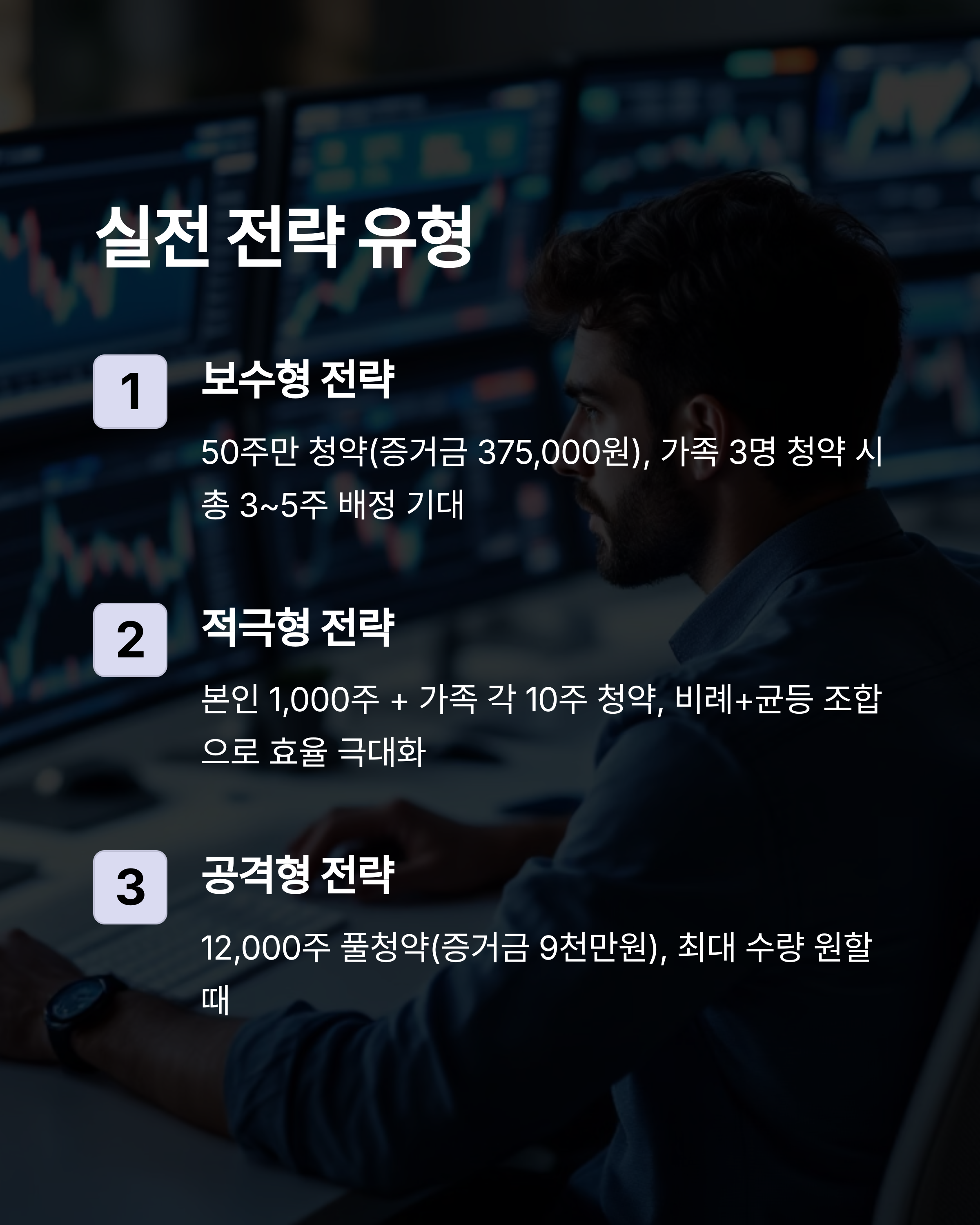 청약 전략에서는 소액 투자자는 균등배정만으로도 무리 없는 접근이 가능하며, 여유 자금이 있는 경우에는 가족 계좌를 활용한 혼합 전략도 고려할 수 있습니다.