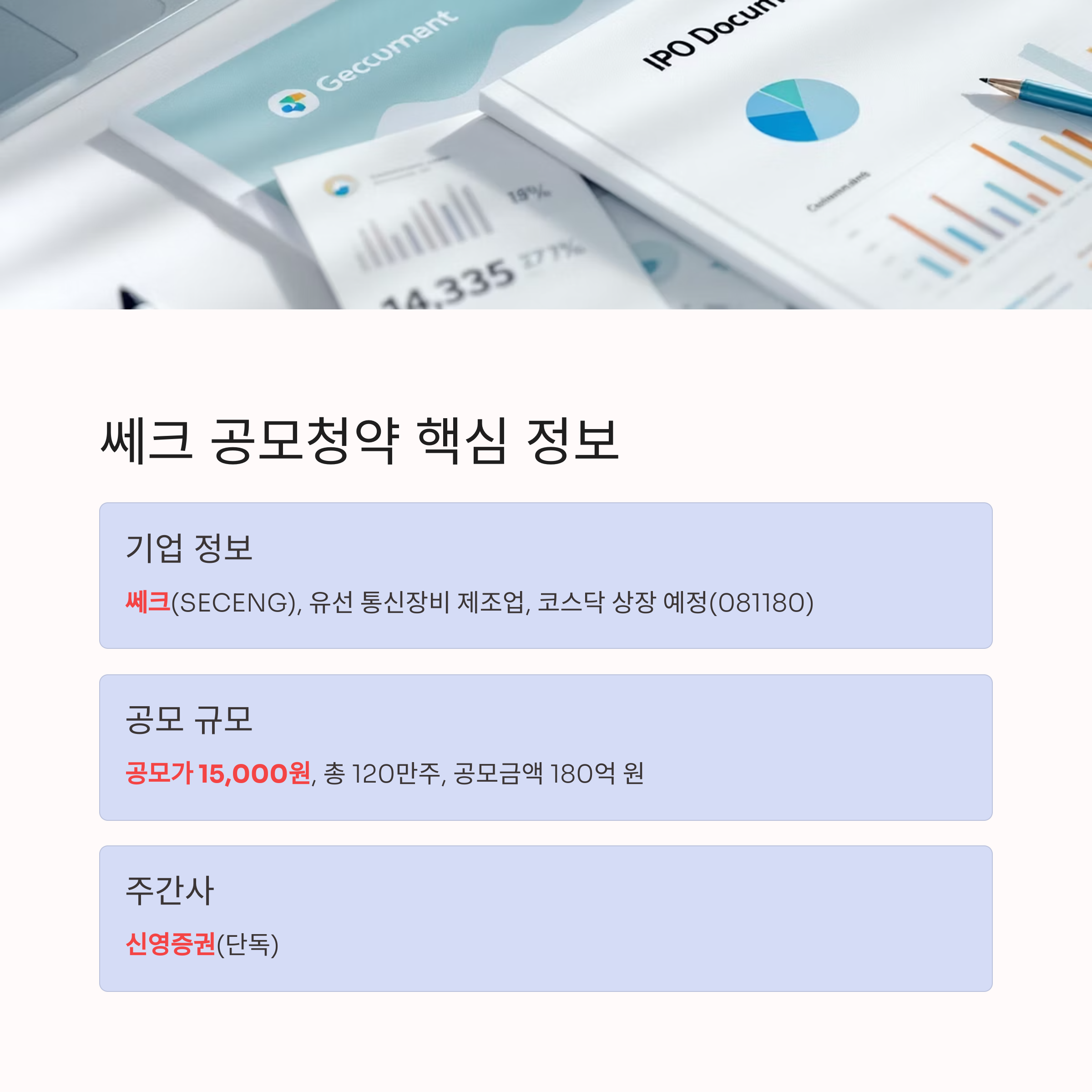 쎄크 공모청약 핵심 요약