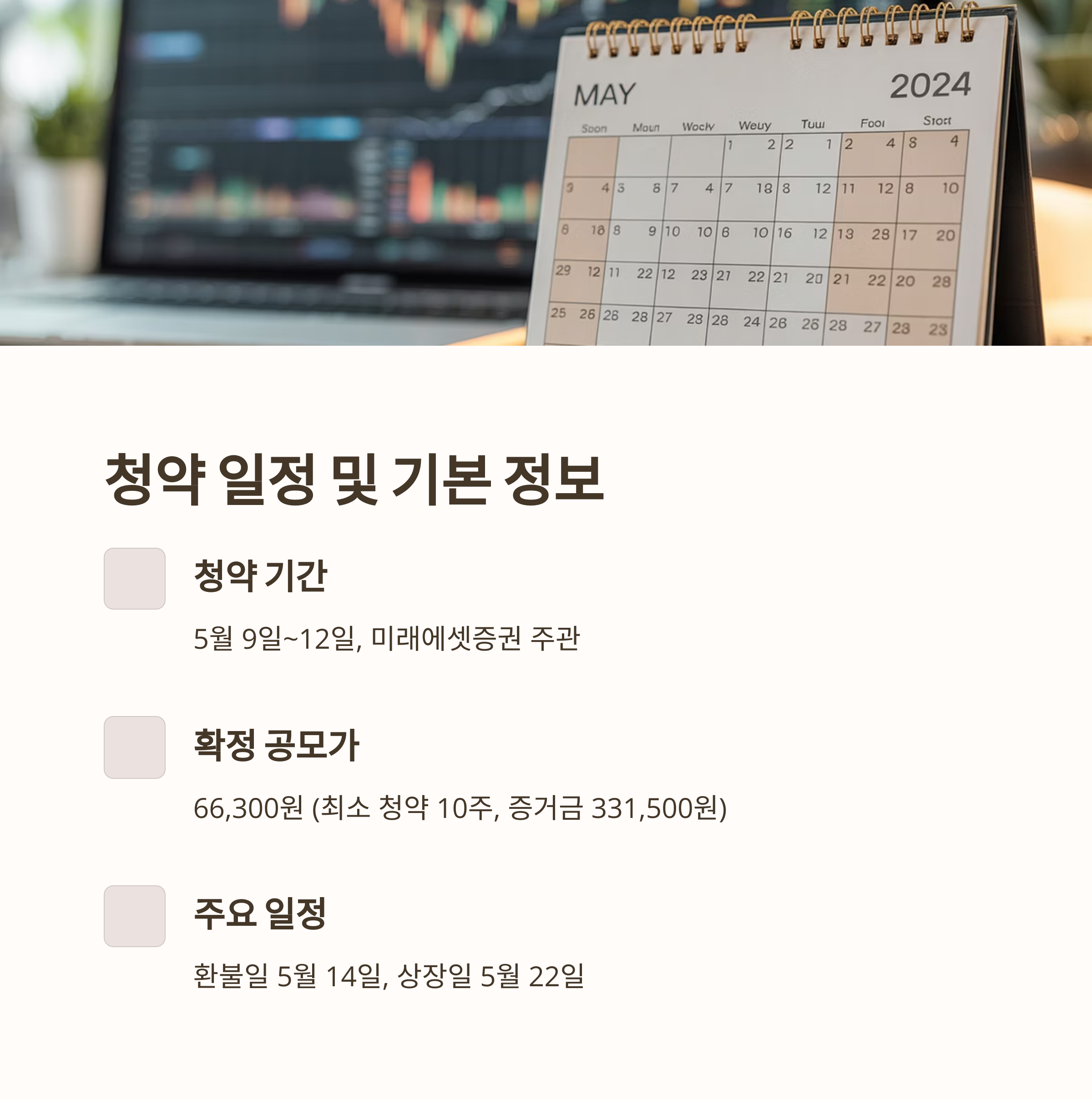 | 확정 공모가 | 66,300원 (밴드 상단) |