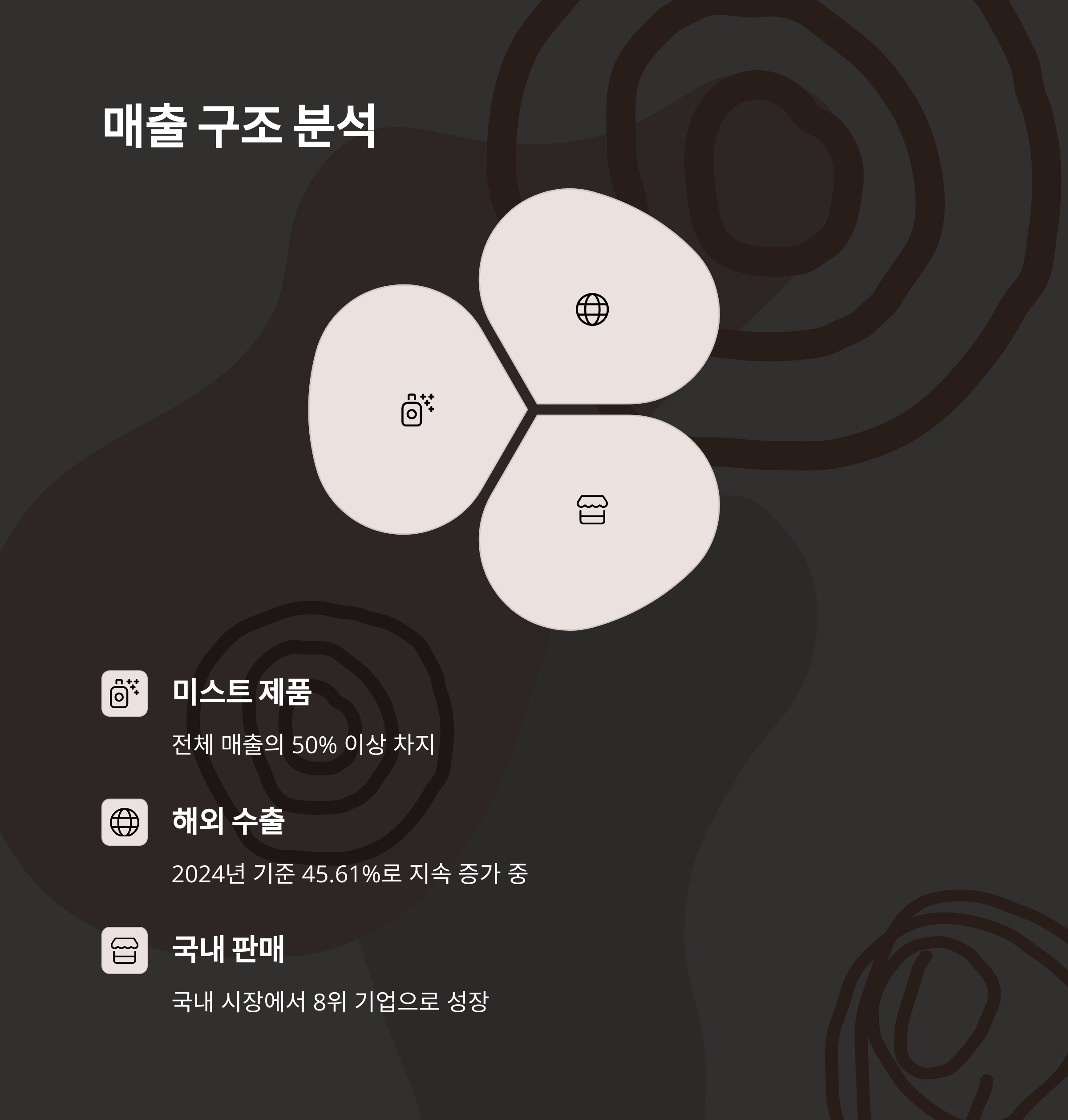 전체 매출의 절반 이상을 이 미스트 제품이 차지하고 있으며