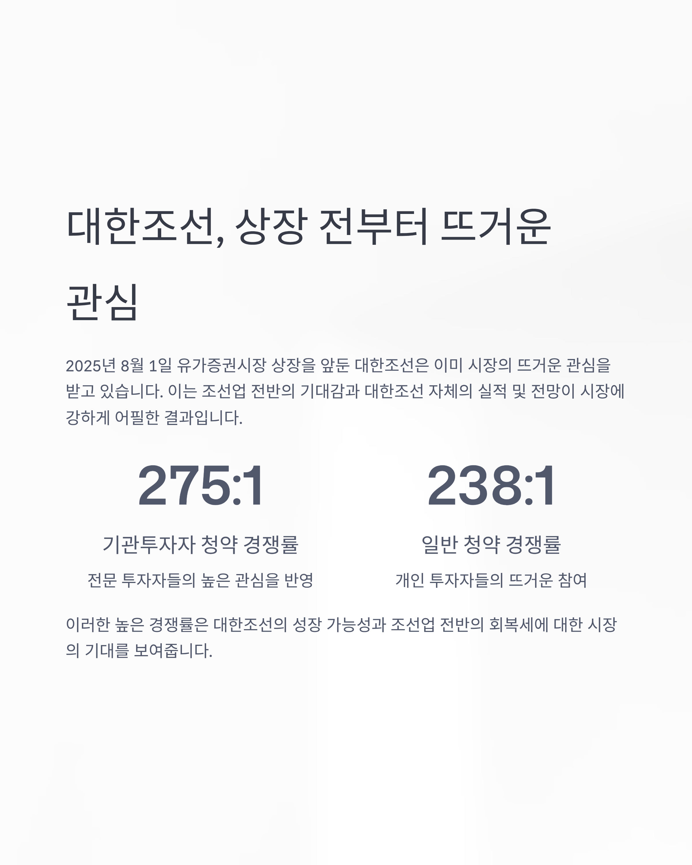 2025년 8월 1일 유가증권시장 상장을 앞둔 대한조선은