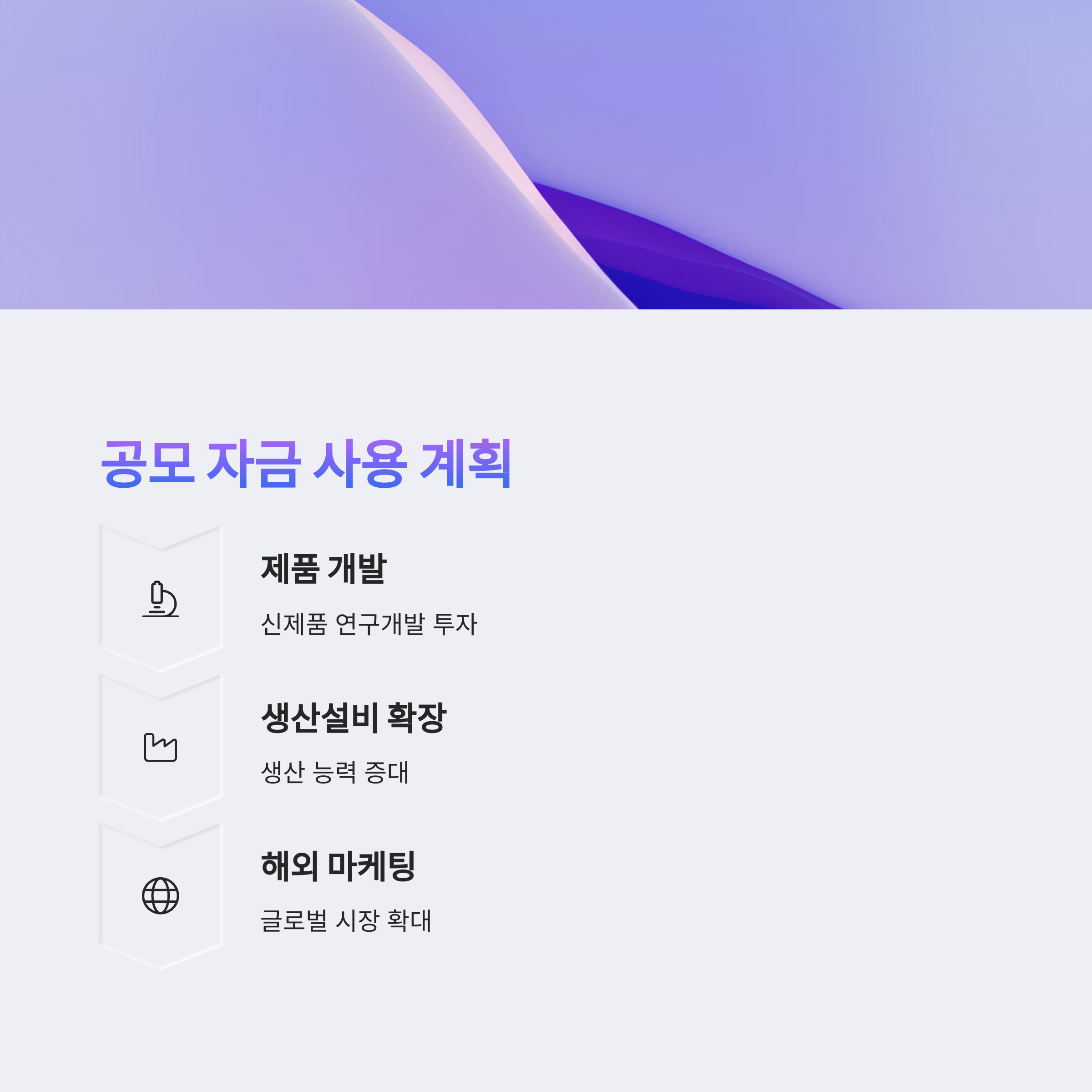 공식 공시에 따르면, 이번 IPO를 통해 확보한 자금은 제품 개발, 생산설비 확장, 해외 마케팅 등에 사용될 예정입니다.