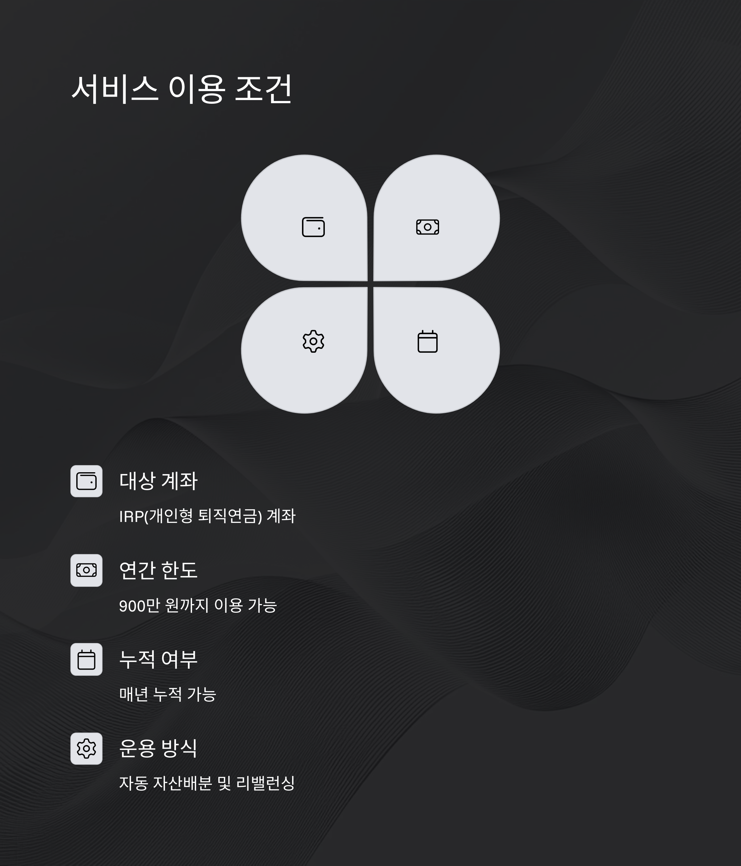 | 대상 계좌 | IRP(개인형 퇴직연금) |