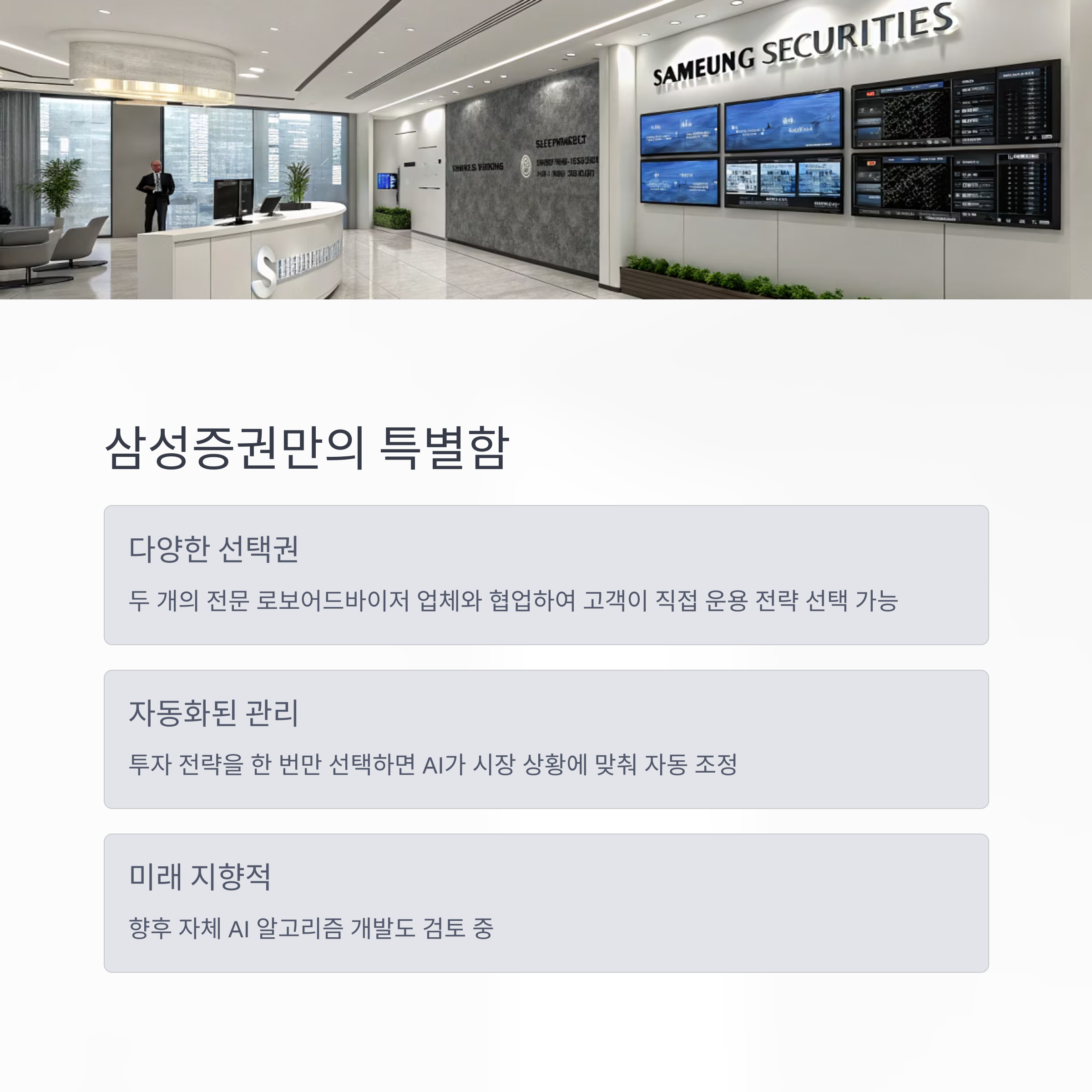 삼성증권의 퇴직연금 일임서비스는 인공지능 기술을 활용해 자동으로 자산을 운용해주는 로보어드바이저 기반 서비스입니다.
