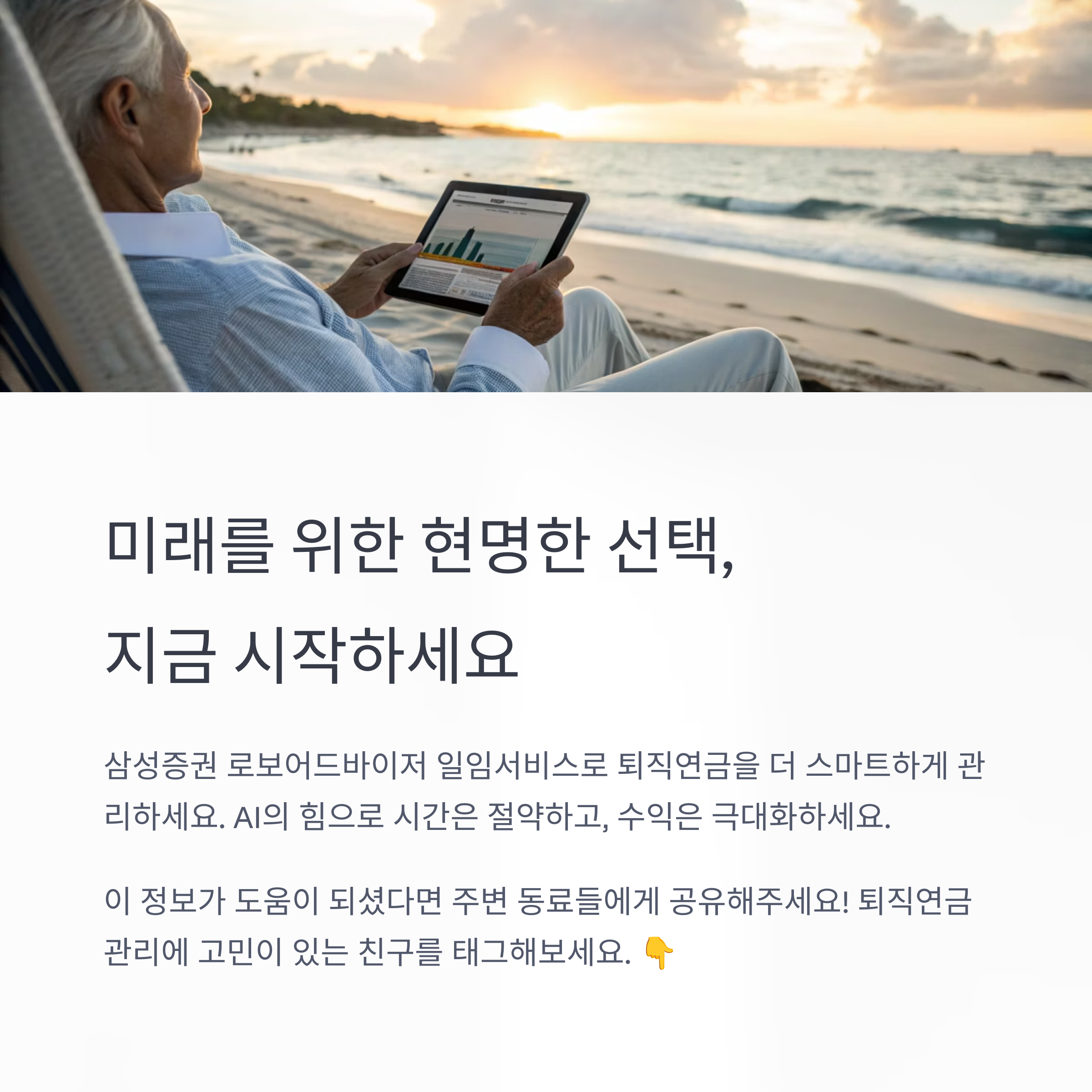 자동화, 전략 선택권, 이벤트 혜택까지 갖춘 점에서 퇴직연금을 체계적으로 관리하고 싶은 분들께 추천할 수 있습니다.