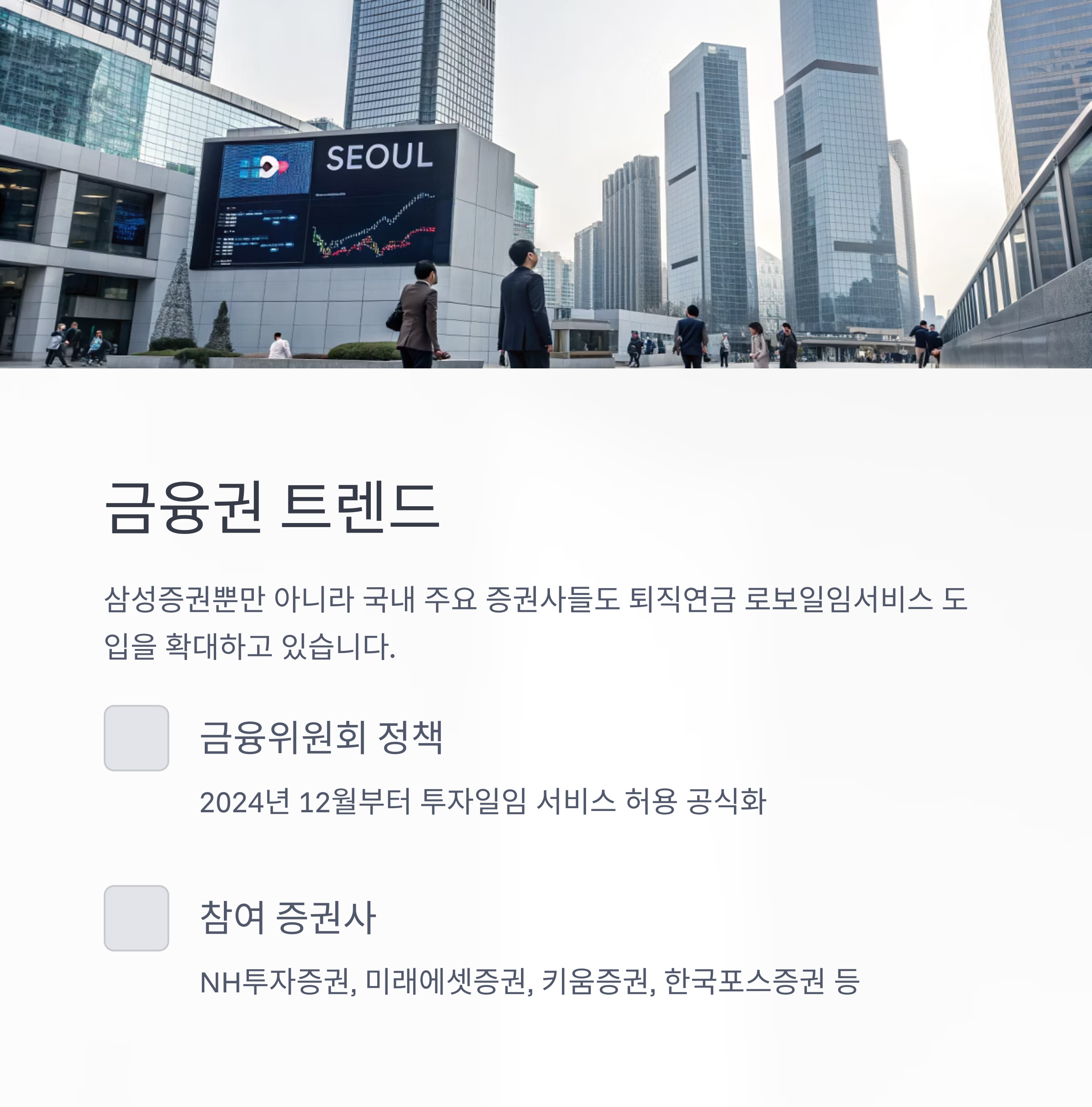 2024년 말부터 퇴직연금 로보일임서비스를 제공하거나 준비하고 있습니다.