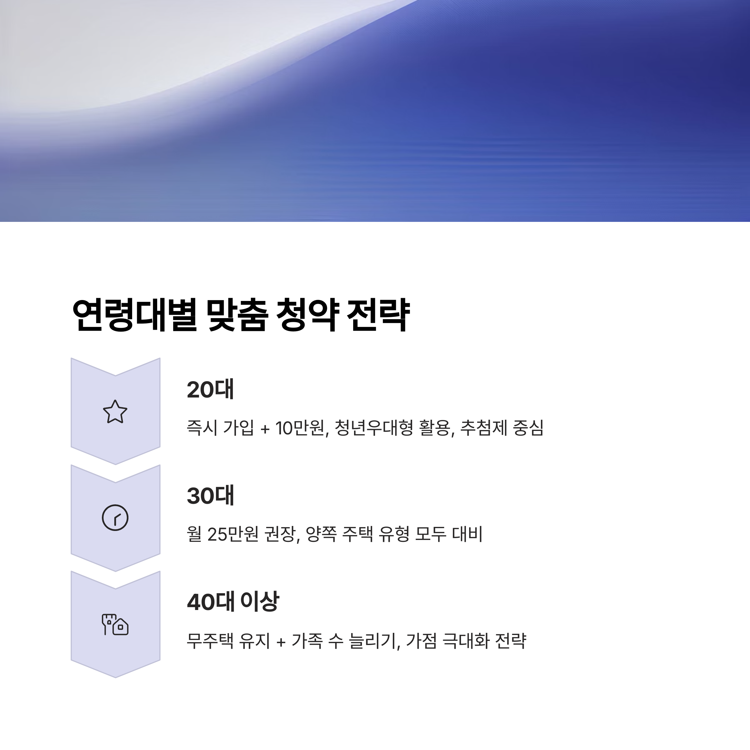 | 40대 이상 | 무주택 유지 + 가족 수 늘리기, 가점 극대화 전략 |
