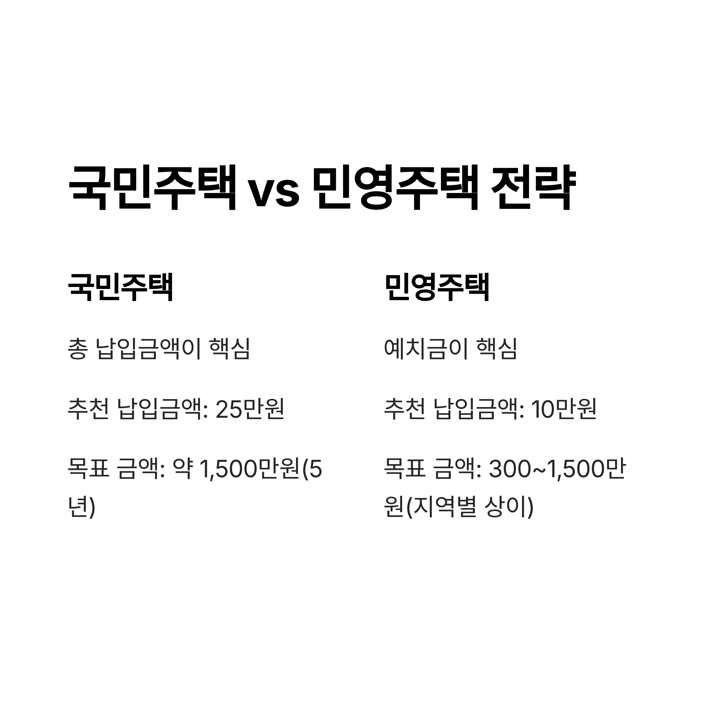 | 국민주택 | 총 납입금액 순 (공공분양) | 25만원 | 약 1,500만원 (5년) |