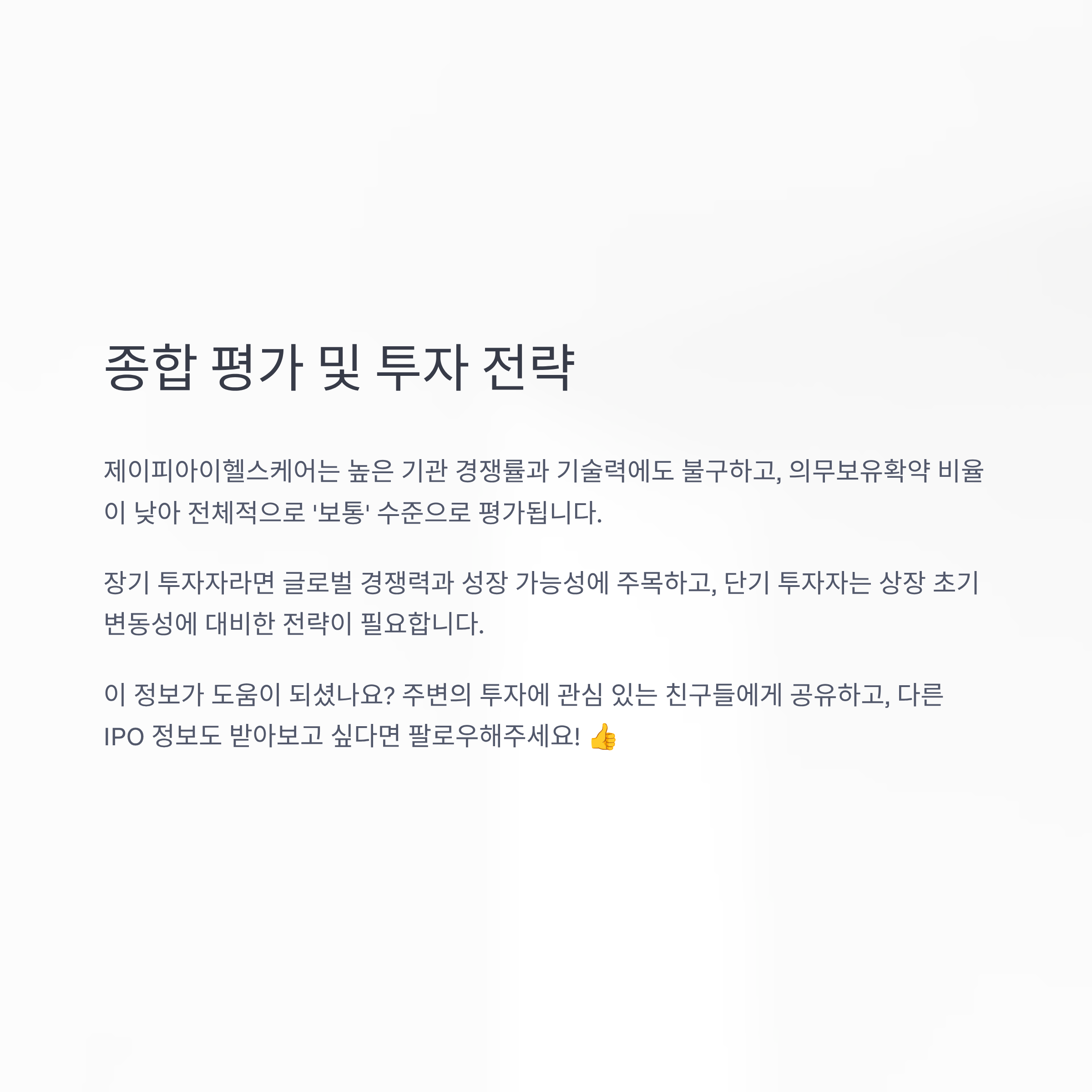 제이피아이헬스케어가 기관투자자 수요예측을 마치고 공모가를 20,000원으로 확정했습니다.