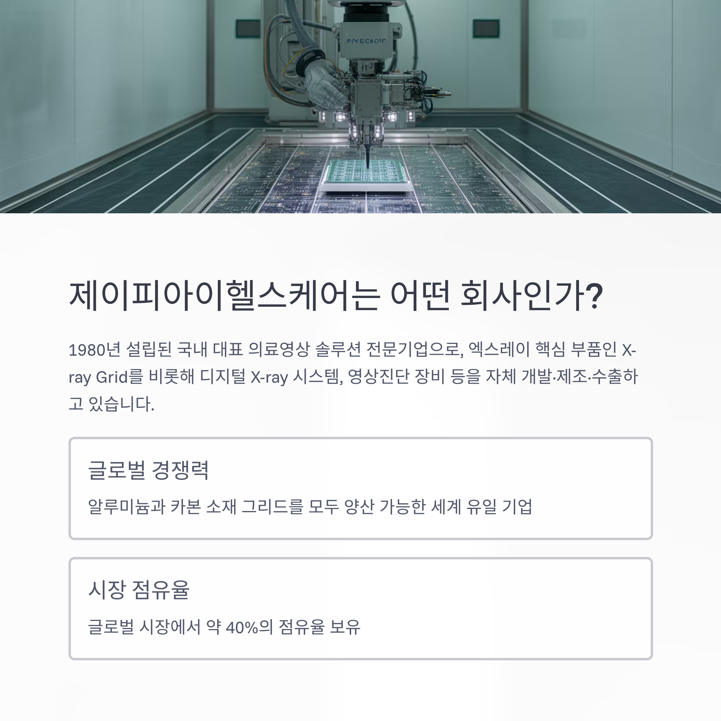제이피아이헬스케어는 1980년 설립된 국내 대표 의료영상 솔루션 전문기업으로