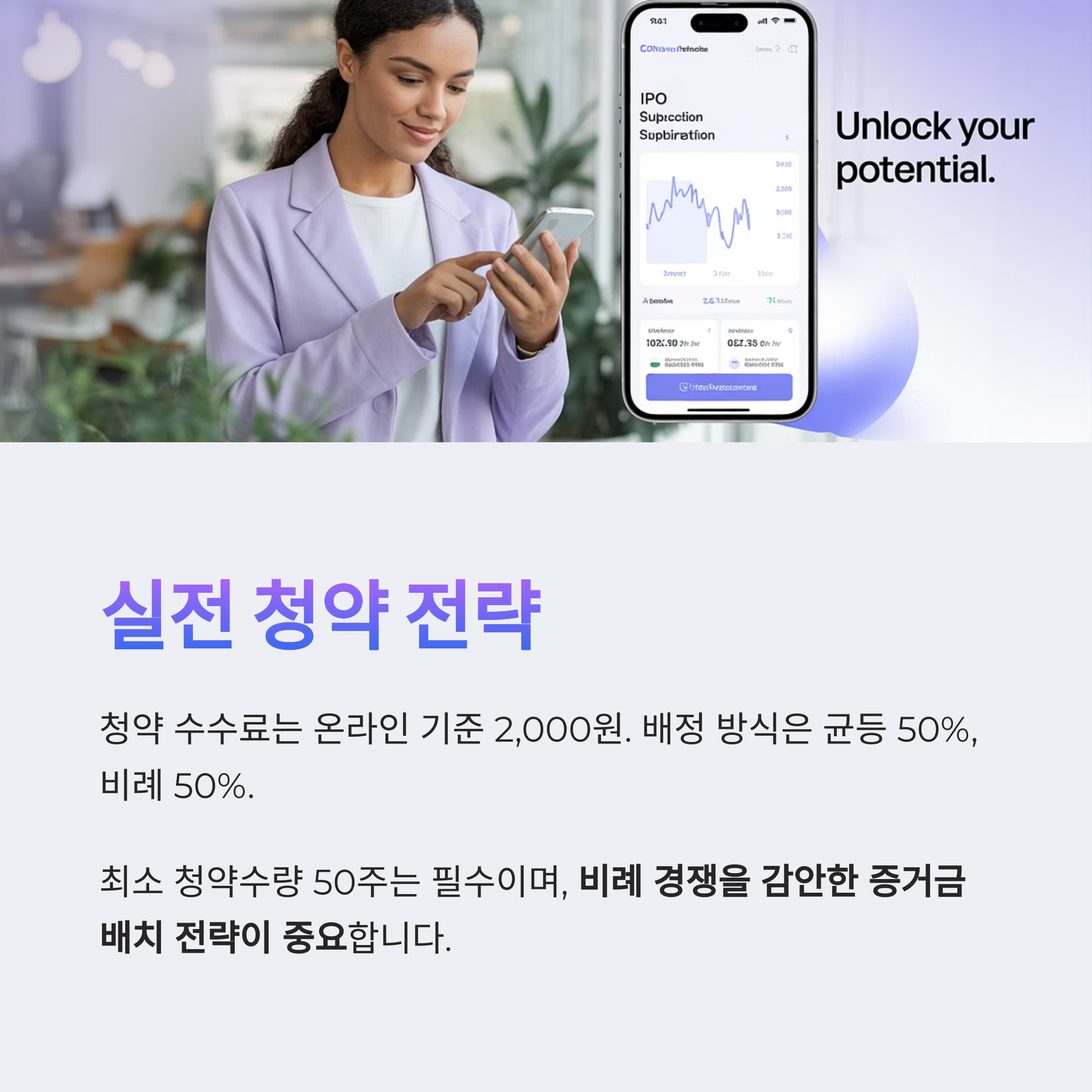 균등 배정을 노리는 소액 투자자도 최소 청약수량 50주는 반드시 넣어야 하며,