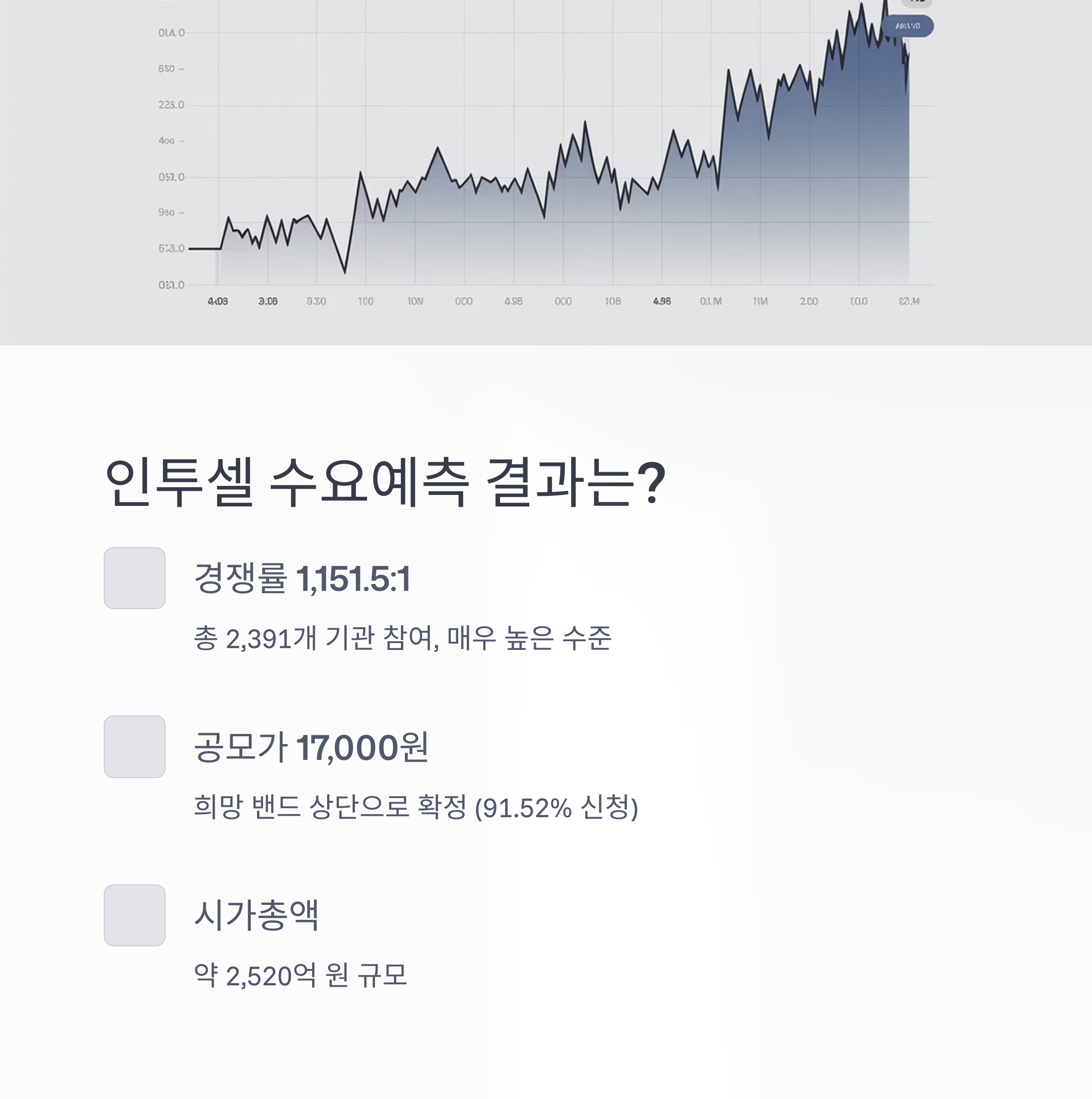 특히 전체 신청 중 91.52%가 공모가 희망 밴드 상단인 17,000원으로 몰려, 투자자들의 기대감을 반영하고 있습니다.