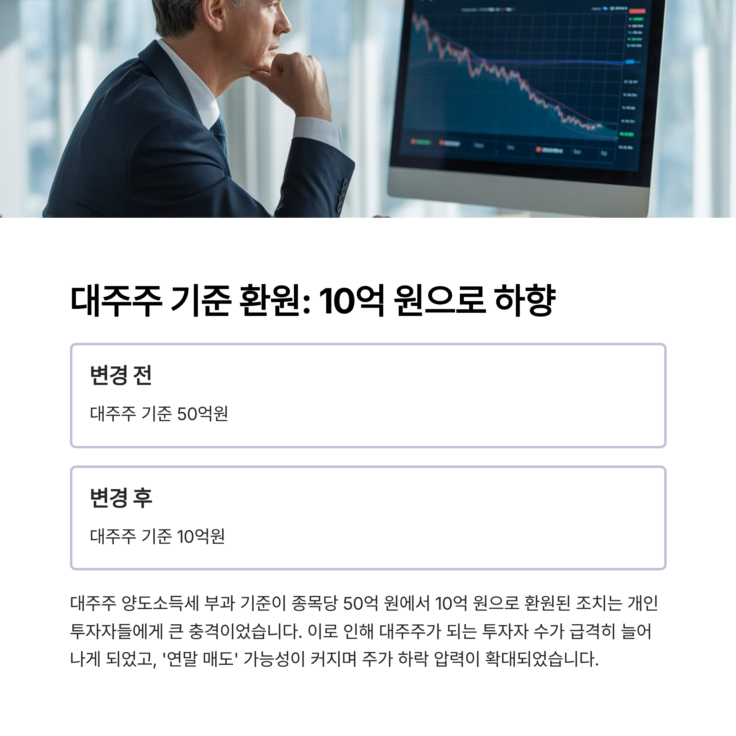 대주주 기준 환원: 10억 원 기준, 매도압력 유발