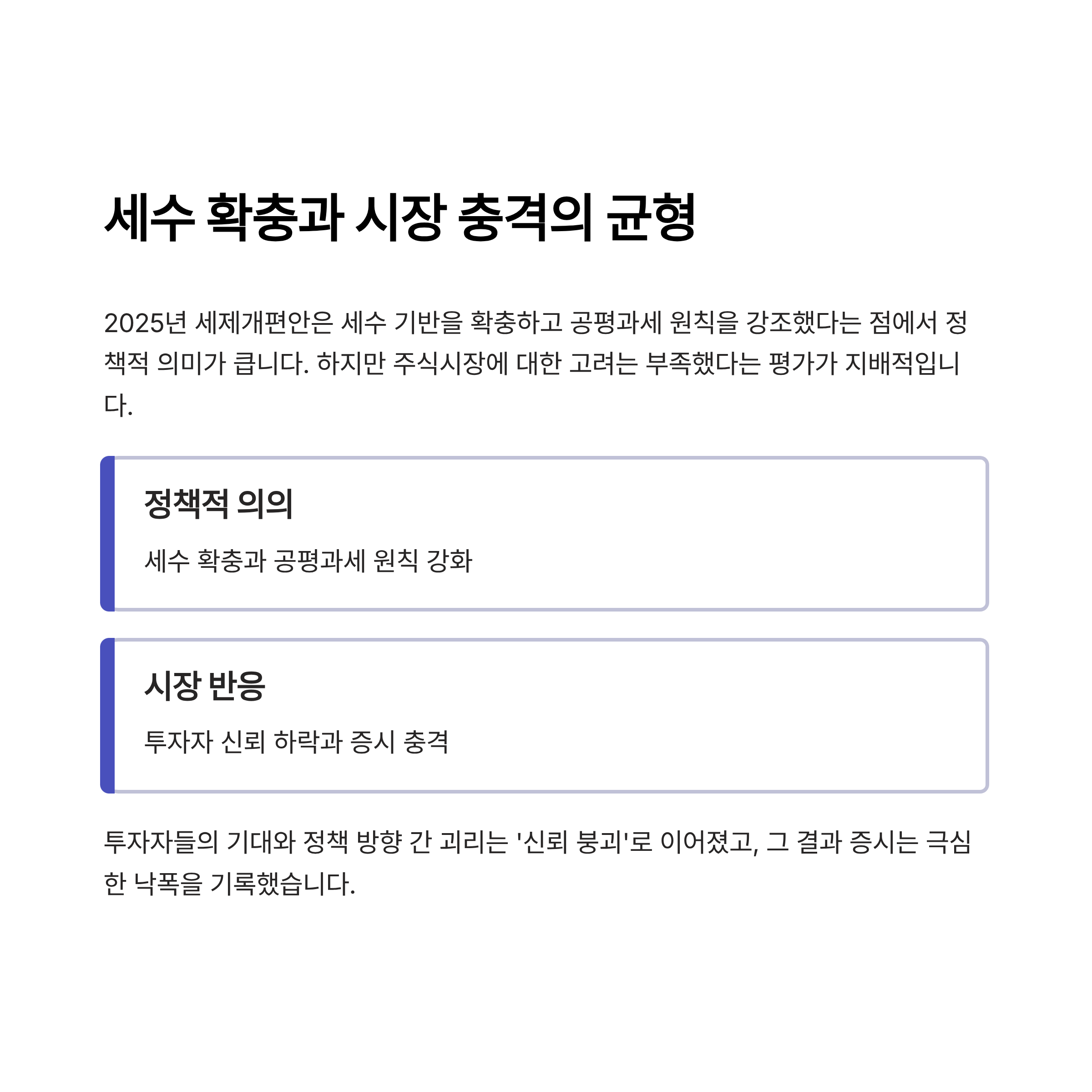 2025년 7월 31일, 기획재정부가 발표한 세제개편안은 법인세, 대주주 기준, 배당소득과 같은 핵심 세제 항목에 대대적인 수정을 담고 있었습니다. 그러나 발표 직후, 8월 1일 한국 증시는 폭락하며 투자자들의 실망감과 정책에 대한 불신이 그대로 드러났습니다. 이번 글에서는 세제개편의 주요 내용과 증시 충격 원인, 투자자 반응을 중심으로 깊이 있는 분석을 제공합니다.