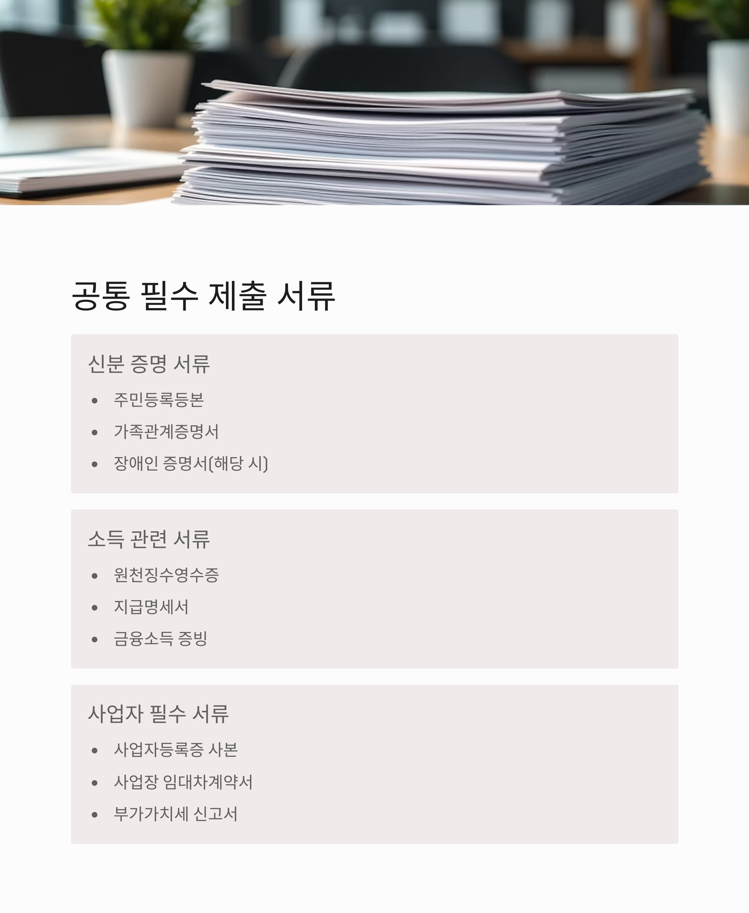 종합소득세 신고 시 필요한 서류는 크게 필수 제출 서류와 추가 제출 서류로 나눌 수 있습니다. 소득 유형과 사업 형태에 따라 제출해야 하는 서류가 달라지므로, 본인의 상황에 맞게 준비하시기 바랍니다.