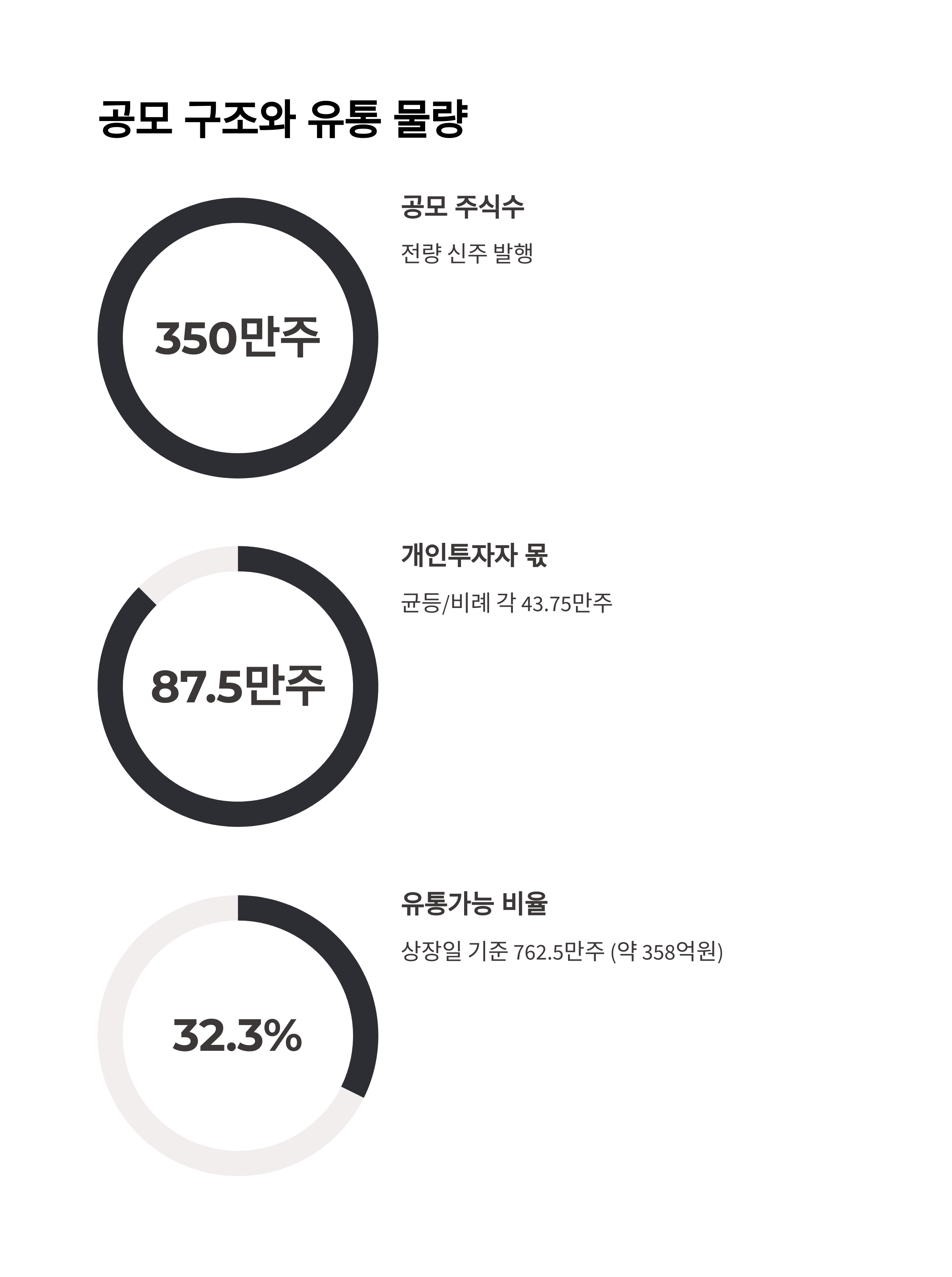 | 상장일 유통금액(예상) | 약 358억 원 |