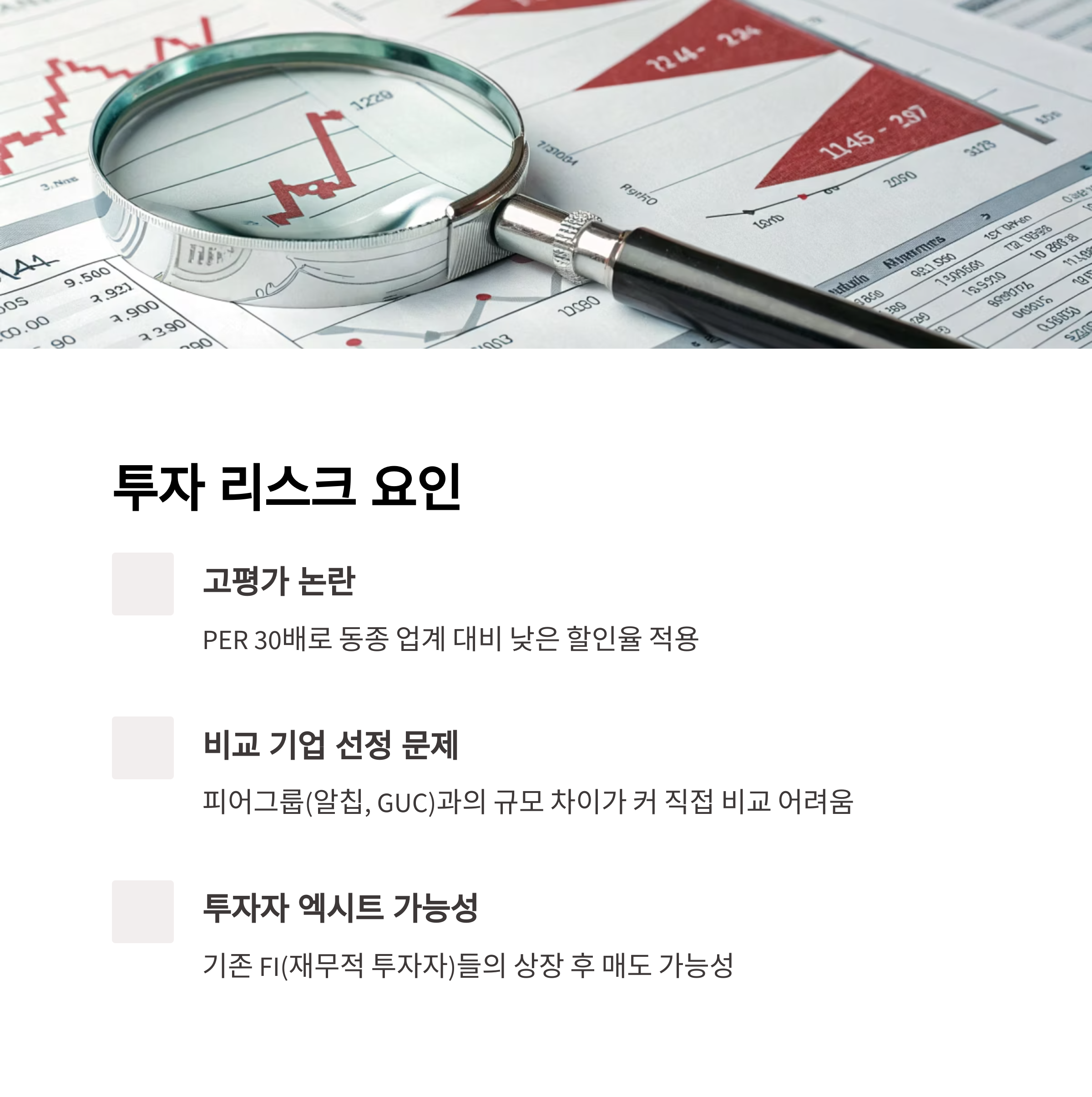 PER 30배의 공모가는 비교 기업 대비 높은 수준이며,