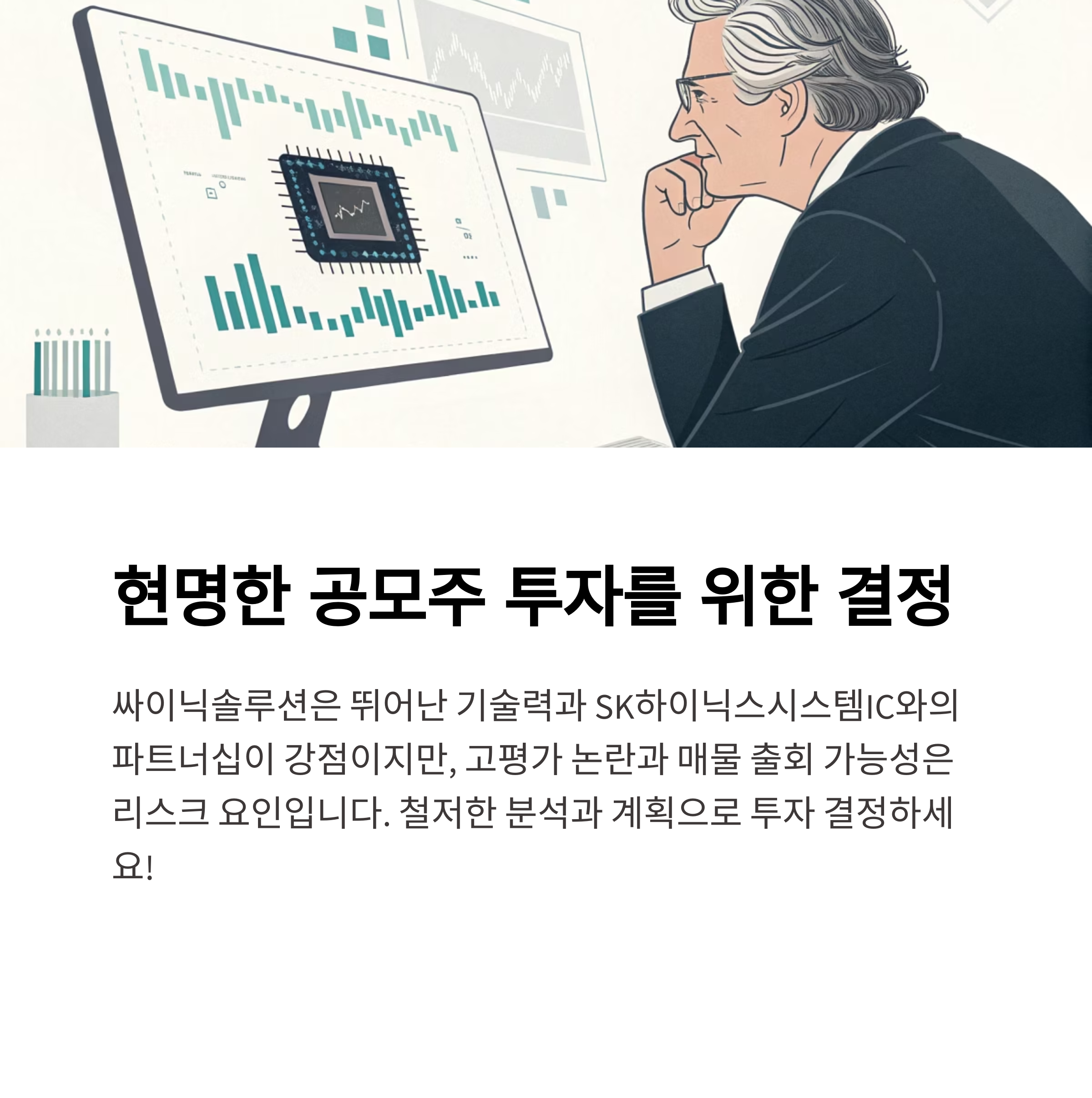 시스템반도체 디자인하우스로 주목받는 싸이닉솔루션이 공모주 청약을 시작했습니다. SK하이닉스시스템IC의 유일한 디자인하우스라는 점이 차별점이며, 수요예측에서 1,289대 1의 높은 경쟁률을 기록하며 시장의 큰 관심을 받았습니다. 하지만 고평가 논란과 상장 직후 매물 압박 가능성, 기존 주주의 엑시트 가능성 등 투자에 앞서 반드시 고려해야 할 리스크도 존재합니다. 이 글에서는 싸이닉솔루션 공모주 청약과 관련된 핵심 정보와 투자 시 유의사항을 정리합니다.